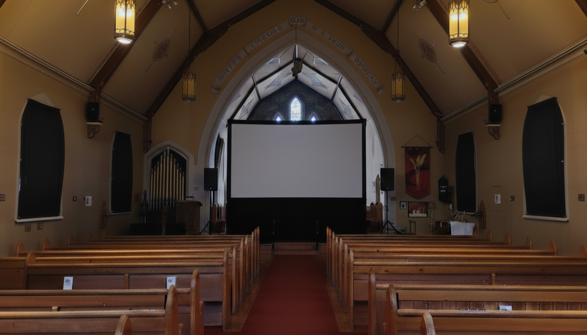 Experience the Virtual Cinema at St. John’s Anglican Church — transformed into an immersive theatre for the festival, including: 16-foot cinema screen, wonderful acoustics, blacked-out sanctuary for a true cinema atmosphere, and padded seating for added comfort.